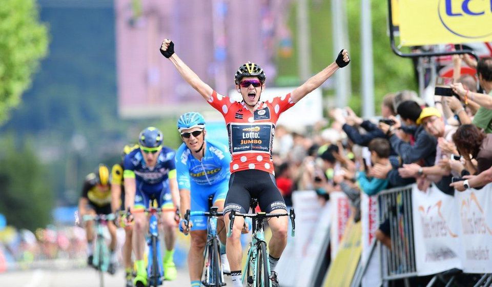Dvadsaťtriročný Bouwman jazdiaci v bodkovanom drese lídra vrchárskej súťaže jednoznačne ovládol šprint šesťčlennej skupinky v úniku a pripísal si najväčší úspech svojej dva roky trvajúcej profikariéry.