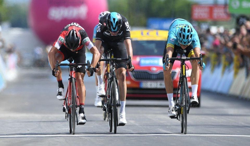 Trio Fuglsang, Porte a Froome v samom závere hodili svoje bicykle do cieľa takmer v jednej línii. Siedmy muž Tour de France 2013 Fuglsang sa napokon tešil z víťazstva o šírku galusky.
