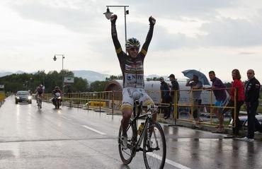 Druhé miesto obsadil so stratou sedemdesiatich sekúnd Talian Adriano Malori, ktorý sa zároveň prepracoval na post priebežného lídra. Jediný slovenský zástupca na tomto podujatí Martin Velits (Omega Pharma-Quickstep) finišoval v piatok na 112. priečke so stratou viac ako desať minút, v priebežnom poradí sa prepadol o sedemdesiat pozícii a je 101. V sobotu je na programe siedma etapa, ktorá povedie z Recanati do Rocca di Cambio a bude merať 205 km.Výsledky - Giro d´Italia 2012: : 6. etapa Urbino - (Porto Sant'Elpidio, 210 km): 1. Miguel Ángel Rubiano (Kol.) Androni Giocattaoli 5:38:30 h, 2. Adriano Malori (Tal.) Lampre - ISD, 3. Michal Golas (Poľ.) Omega Pharma-Quickstep, 4. Aleksandr Djačenko (Kaz.) Astana Pro Team, 5. Cesare Bendetti (Tal.) Team NetApp - všetci +1:10 min, 6. Daryl Impey (JAR) Orica GreenEdge Cycling Team, 7. Filippo Pozzato (Tal.) Farnese Vini - Selle Italia, 8. Fabio Sabatini (Tal.) Liquigas-Cannondale, 9. Francisco José Ventoso Alberdi (Šp.) Movistar Team, 10. Michal Kwiatkowski (Poľ.) Omega Pharma-Quickstep - všetci +1:51,... 112. Martin Velits (SR) Omega Pharma-Quickstep +10:39 min Poradie po 6. etape: 1. Adriano Malori (Tal.) Lampre - ISD 20:25:28 h, 2. Michal Golas (Poľ.) Omega Pharma-Quickstep +15 s, 3. Ryder Hesjedal (Kan.) Garmin +17, 4. Miguel Ángel Rubiano (Kol.) Androni Giocattaoli +30, 5. Christian Vande Velde (USA) Garmin-Barracuda +32, 6. Joaquim Rodríguez (Šp.) Kaťuša +36, 7. Peter Stetina (USA) Garmin +37, 8. Daniel Moreno Fernández (Šp.) Kaťuša, 9. Enrico Gasparotto (Tal.) Astana Pro Team - obaja +39, 10. Luke Roberts (Aus.) Team Saxo Bank +41,... 101. Martin Velits (SR) Omega Pharma-Quickstep +9:41