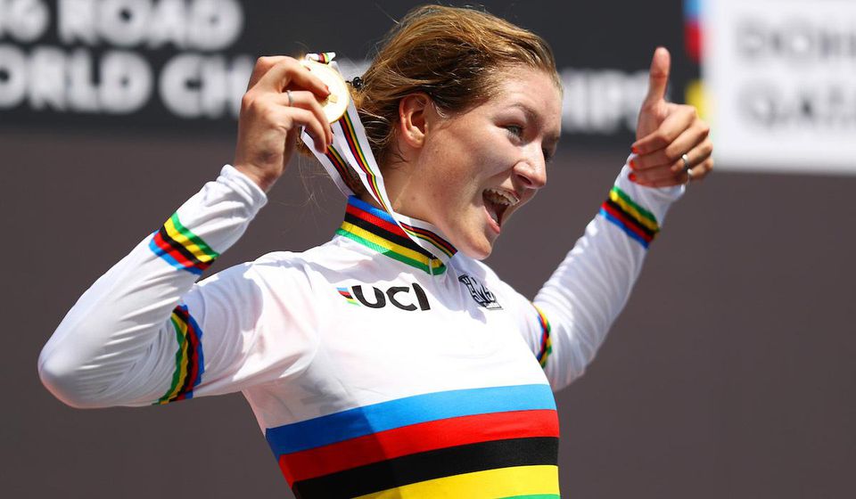 Holanďanka Karlijn Swinkelsová získala na majstrovstvách sveta v cestnej cyklistike v katarskej Dauhe titul v časovke junioriek. Na 13,7 km dlhej trati triumfovala časom 18:21,77 min. s náskokom 7,35 sekundy pred úradujúcou majsterkou Európy Taliankou Lisou Morzentiovou, bronz získala Francúzka Juliette Labousová (+21,35), hoci po polovici trate bola ešte šiesta.