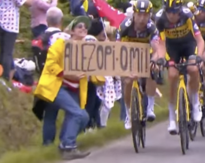 Stalo sa to približne 45 kilometrov pred dojazdom 1. etapy prestížnych pretekov Tour de France. Jedna fanúšička vstúpila na cestu s transparentom „Allez Opi-Omi!”, pričom bola chrbtom k celému pelotónu, ktorý sa jej nedokázal vyhnúť.