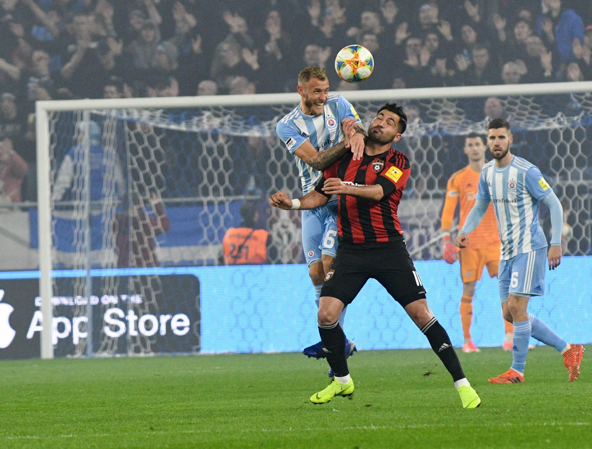 Depetris sa dostal do jedinej šance, hlavou po Čonkovom centri namieril iba do bočnej siete. Yilmaz bol úplne nevýrazný, hoci v jeho jedinom úniku ho neprávom zastavil rozhodcovský verdikt. V ofsajde totiž vtedy nebol. Útočný výkon Spartaka vyznel rozpačito. Podobne by sa dal charakterizovať aj slovanistický prvý polčas.