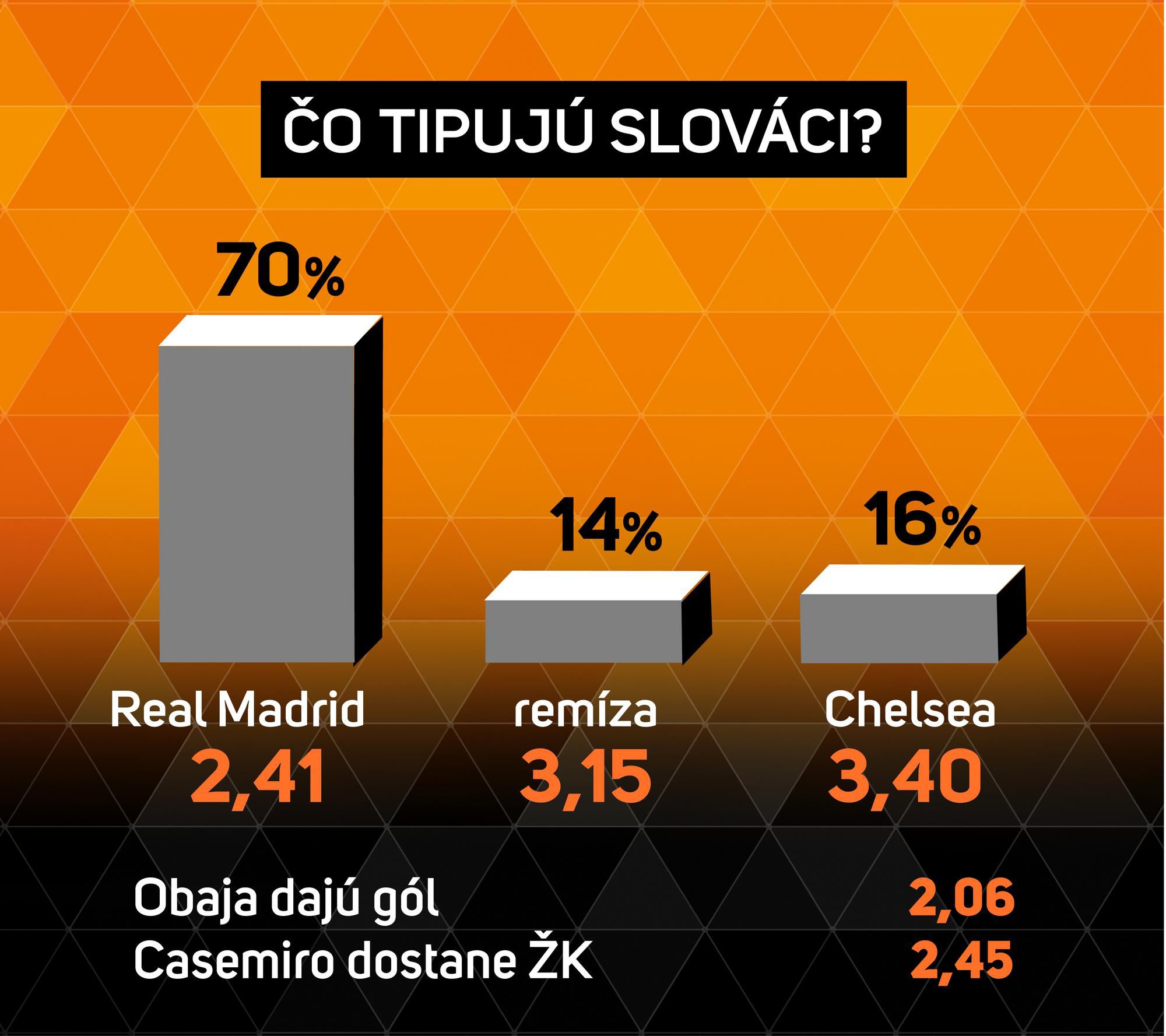 O osude semifinále sa v Madride ešte nerozhodne. Domáci sú na vlastnom trávniku silní a na rýchle kontry obrana Chelsea recept nenájde, preto Mendy inkasuje o gól viac ako Courtois. Skórujú však oba celky a ak by som si mal vybrať špeciálnu stávku, tak by to bola žltá karta pre Casemira. Real bude hrať veľa bez lopty a Brazílčan ju videl v 38 zápasoch tejto sezóny až 14-krát.