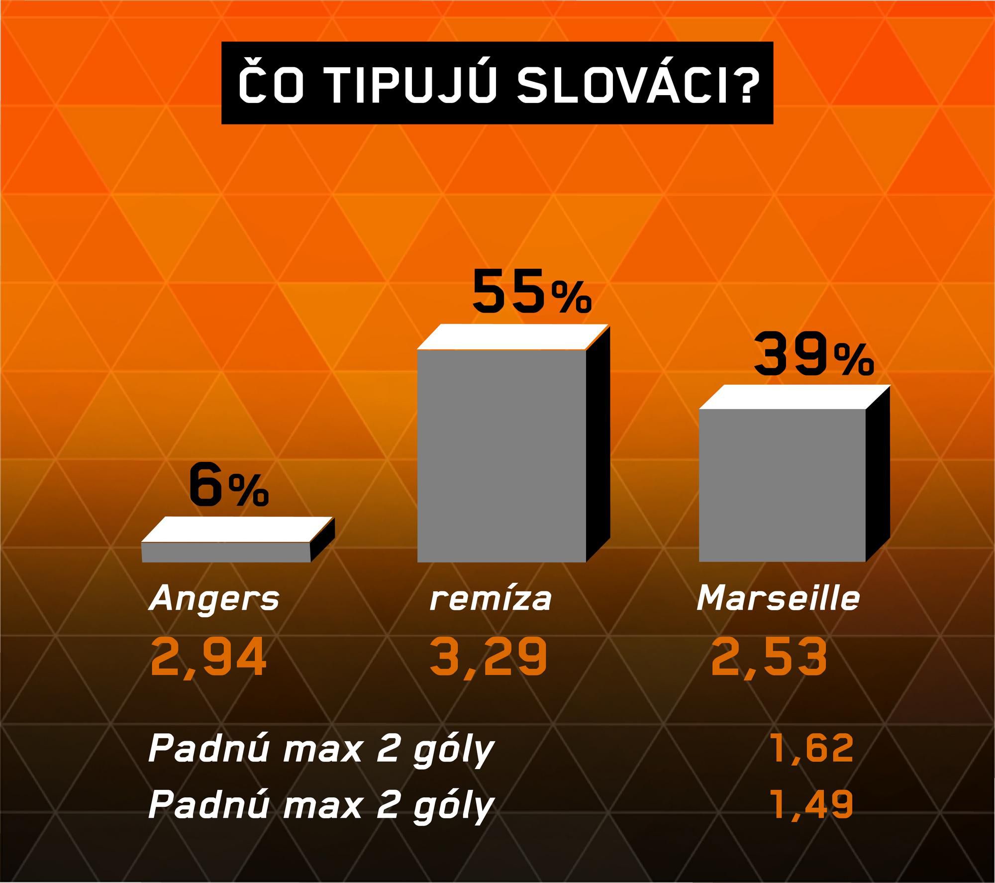 Angers sa musí vyrovnať so značnou maródkou, čo by mohlo hosťom uľahčiť prácu. Forma hovorí pre Marseille, vyrovnaný duel by mohol priniesť góly na oboch stranách a teda v celkovom súčte aspoň tri.