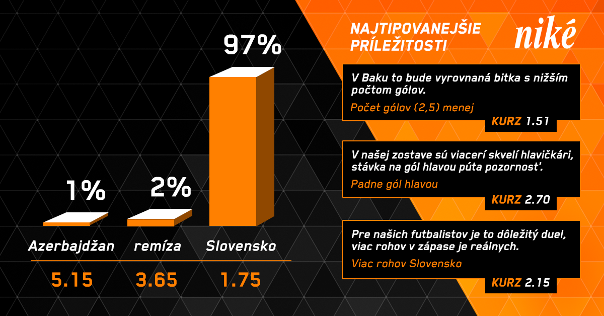 Azerbajdžan vstúpil do kvalifikačných bojov sympatickým výkonom na pôde vicemajstrov sveta Chorvátov. Gólom bývalého žilinského útočníka Ramila Sheydaeva sa ujal vedenia, o zisk aspoň bodu prišiel až v 79. minúte, keď rozhodol Kramarič. V sobotu odohralo mužstvo z Kaukazu domáci duel s Maďarmi, v ktorom preukázalo slabiny pri štandardkách. Pri prvom aj druhom inkasovanom góle. Zápas skončil víťazstvom Maďarska 3:1, naši južní susedia zaznamenali už druhý triumf z troch zápasov. Azerbajdžanu vypadol stredopoliar španielskeho Alcorónu Eddi Israfilov, inak má chorvátsky tréner Nikola Jurčevič k dispozícii všetko, čo nominoval na dvojzápas.