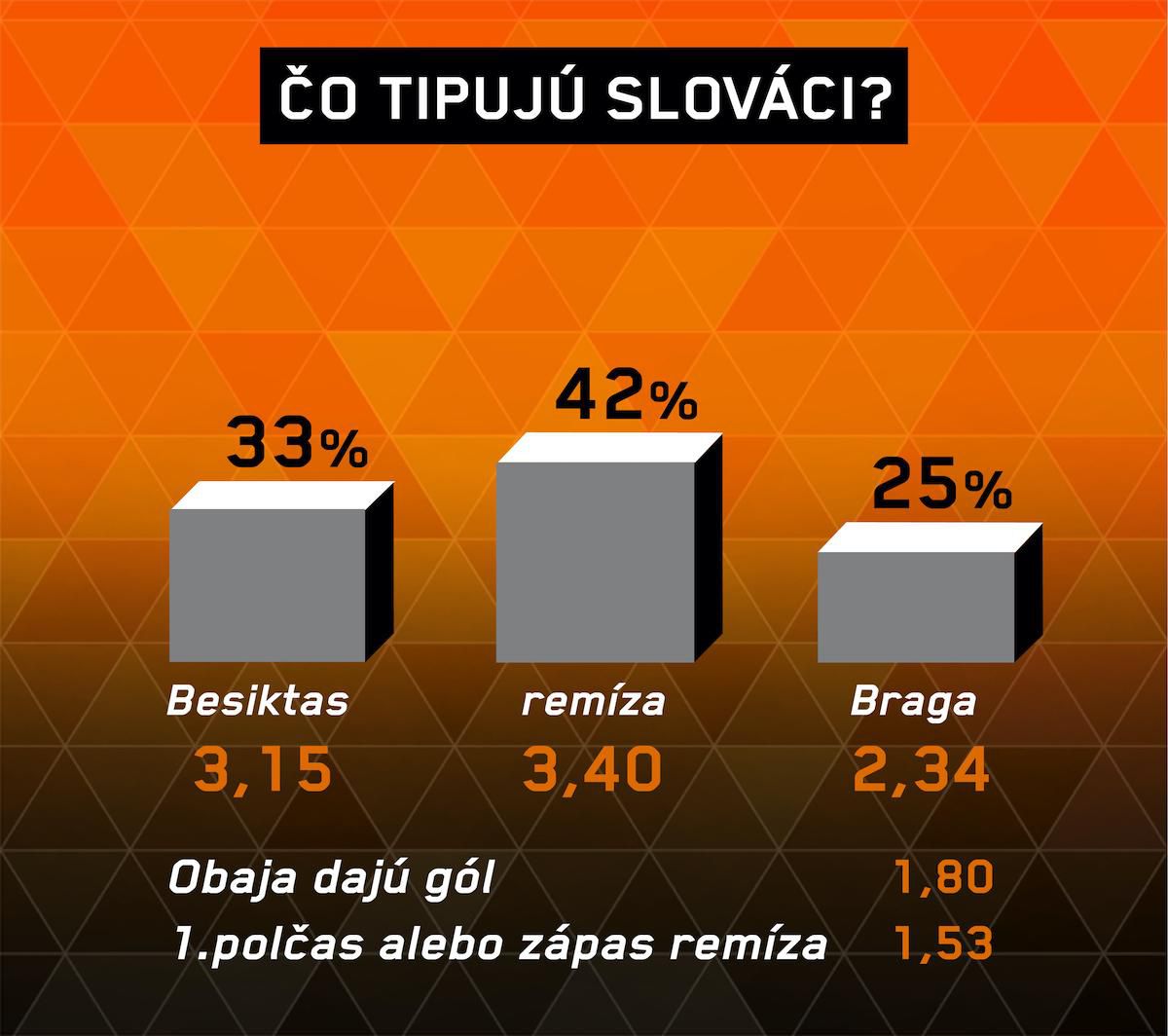 Portugalci tiež neodštartovali sezónu ideálne, ale tri pohárové výhry im môžu výrazne pomôcť. Polepšiť by si mali aj v domácej súťaži, keďže sú až 11, ligový duel odohrali naposledy ešte v septembri. Besiktas vie, že ak prehrá, s postupom sa pravdepodobne rozlúči. Braga síce úvodný súboj skupiny vonku vyhrala, ale v tomto prípade už úspešná nebude.