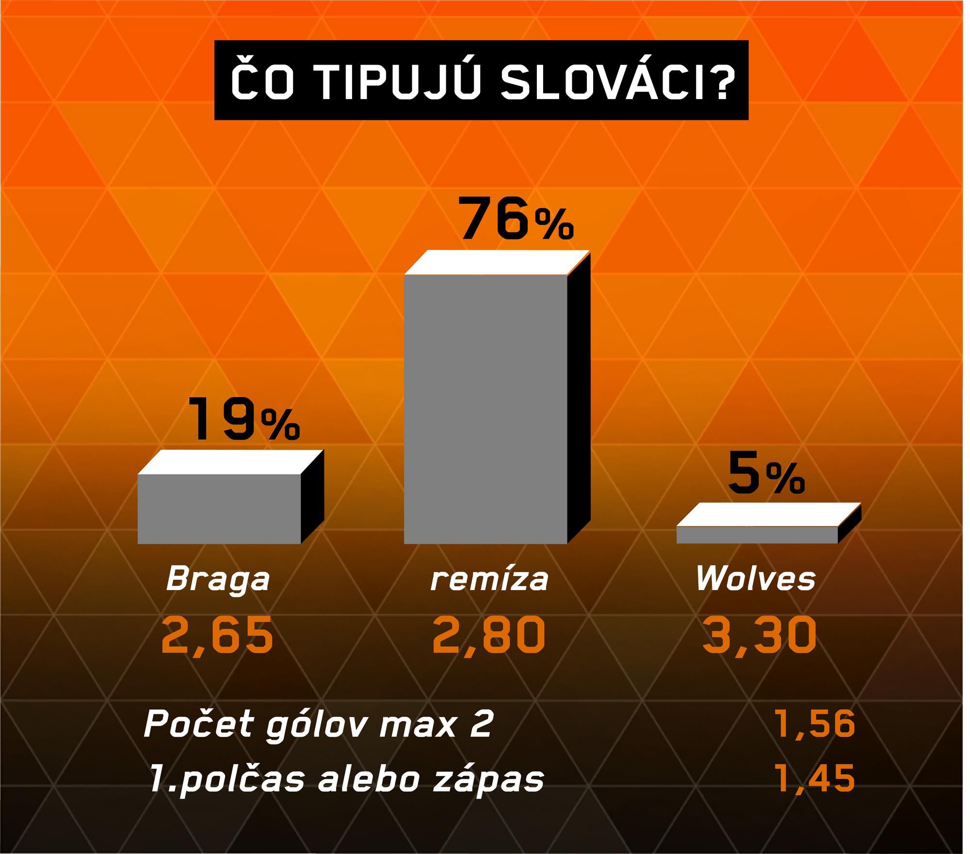 Dá sa očakávať, že domáci budú aktívnejší, ale kvalita je na strane Wolves. V prvom dueli uspeli Portugalci, no šlo o tesnú výhru 1:0 a neboli výrazne lepším tímom. „Vlci” chytili v domácej súťaži celkom dobrú formu a už neokupujú spodné priečky tabuľky. Vďaka skvelej šnúre siedmich duelov bez prehry sa vyšplhali už na 5. miesto tabuľky Premier League. Ich hlavnou úlohou je účinkovanie v pohárovej Európe aj na jar a sú k tomu blízko. Zvládli lepšie súboje so Slovanom, čo sa vo výsledku môže ukázať, ako kľúčové.