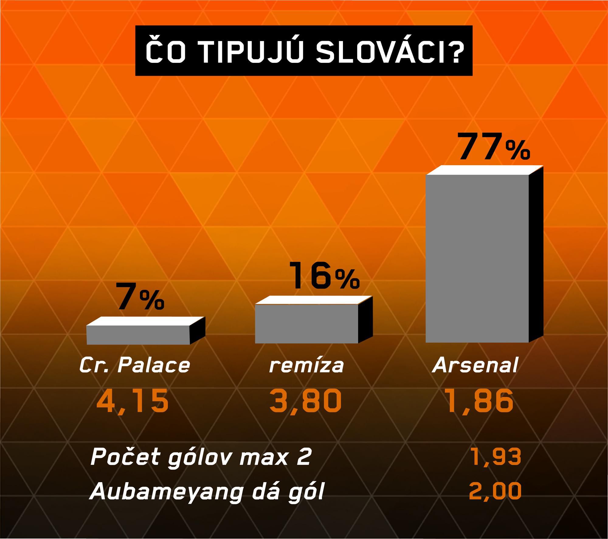 Progres Arsenalu je zrejmý, mužstvo je hladné po víťazstvách a musí naháňať stratu z pôsobenia Unaia Emeryho, teraz môže preskočiť svojho tabuľkového suseda. Palace s jeho chabou ofenzívou môže mať výrazný problém skórovať, obrana Arsenalu na čele s Davidom Luizom začala fungovať. Arteta si pripíše tretiu výhru v rade, na nulu.