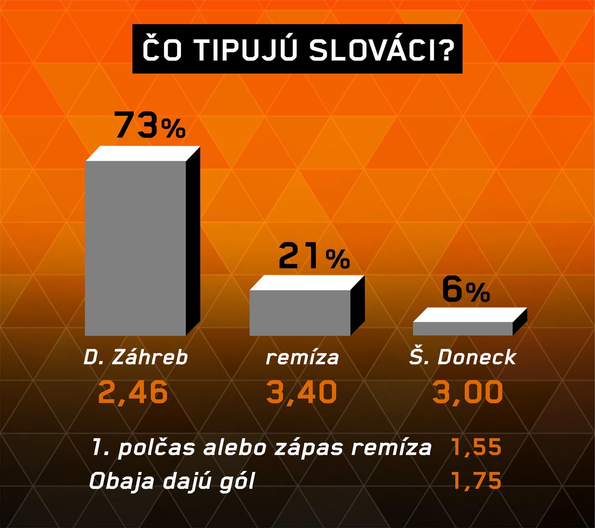 Zaplnený štadión Maksimir potiahne domácich za bodovým ziskom. Minimálne raz sa však presadí aj súper, preto nám to najviac vychádza na remízu.