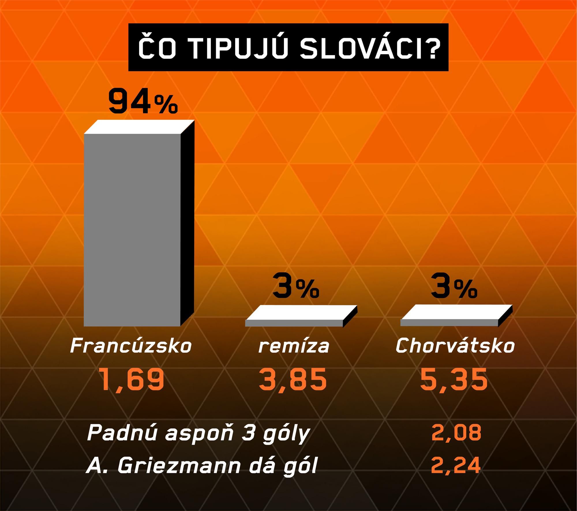 Chorvátsko hrá opäť vonku a navyše Francúzsko ešte nikdy nezdolalo. Dva zo šiestich súbojov sa skončili remízou a štyri vyhrali hráči z krajiny „galského kohúta“. Domáce víťazstvo s aspoň dvoma zásahmi do súperovej siete sa zdá byť jasnou záležitosťou.