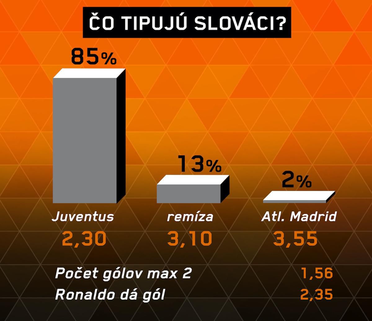 Juventus – Atl. Madrid - 1 Počet gólov (2,5) - menej Ronaldo dá gól - áno