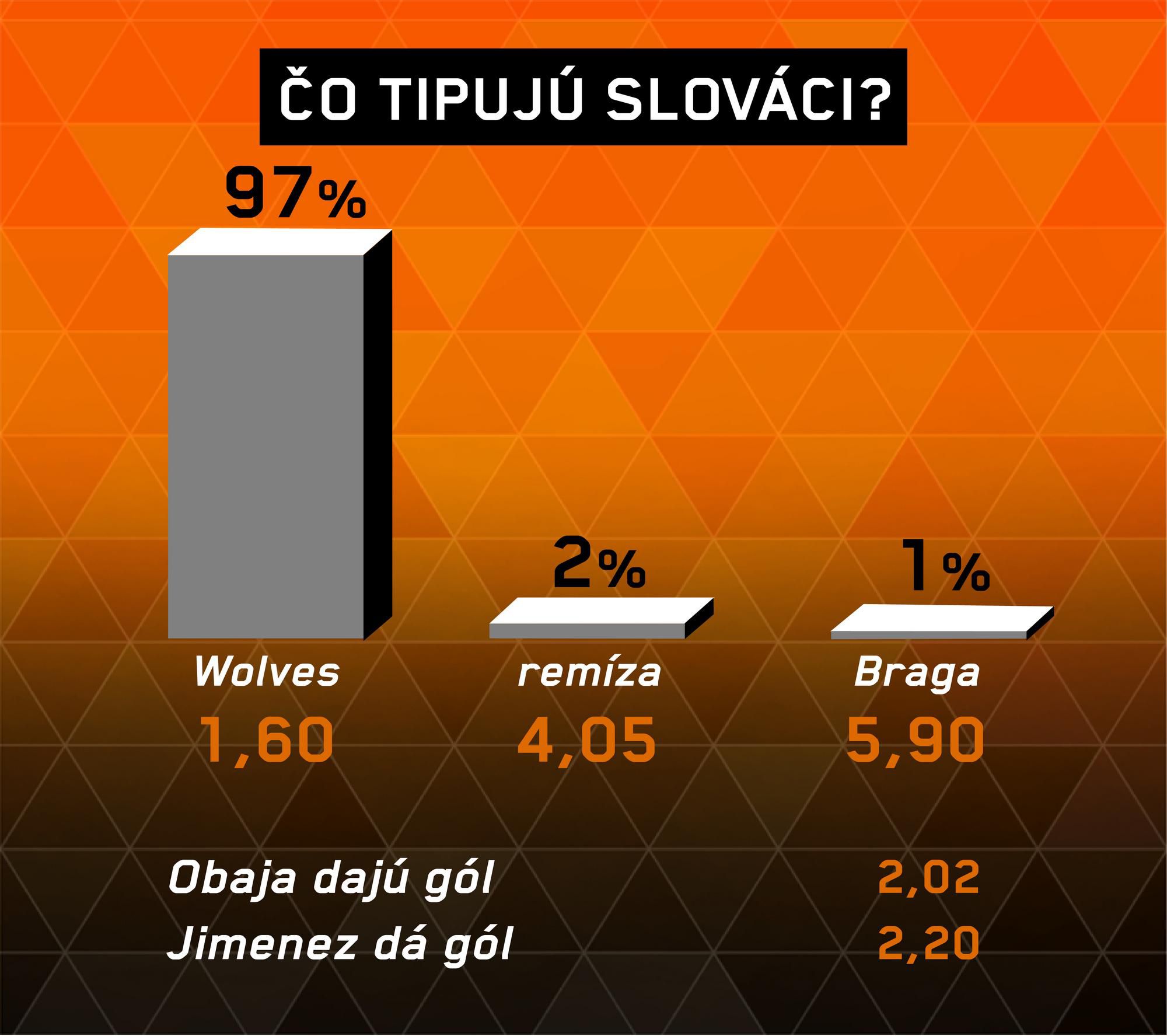 Papierová kvalita je na strane Wolves, preto si myslíme, že vyhrajú. Mohlo by padnúť viac gólov, ofenzívna sila domácich je obrovská.