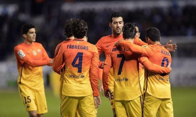 "Dôležité sú pre nás body, nie rekord. Z 30 možných sme ich získali 28 a to svedčí o odhodlaní mojich zverencov. V každom zápase bojujeme až do úplného konca," povedal tréner FCB Tito Vilanova.Gólovo naprázdno vyšiel Lionel Messi, ktorý je ale stále na čele tabuľky kanonierov súťaže s 13 presnými zásahmi. Argentínčanovo strelecké mlčanie nevyužil jeho prenasledovateľ Cristiano Ronaldo, ktorý tiež nezveľadil svoje 11-gólové konto. Mrzieť ho to ale nemusí, jeho Real suverénne zdolal 4:0 Zaragozu a na treťom mieste tabuľky nedovolil Barcelone zväčšiť náskok na viac ako 8 bodov.V súboji s gigantmi stráca dych madridské Atlético, prehralo vo Valencii 0:2 gólmi Soldada a Nelsona Valdeza.