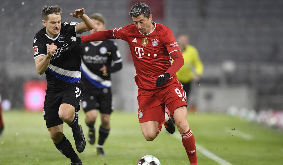 Hostia mali dobrý vstup do zápasu v Allianz Aréne a už v 9. minúte zaskočil súpera Michel Vlap, v 37. ich poslal do dvojgólového vedenia Amos Pieper. Ihneď po zmene strán znížil Robert Lewandowski, no už o minútu upravil na 3:1 pre nováčika Christian Gebauer. Bayern však dokázal vyrovnať zásluhou gólov Corentina Tolissa a Alphonsa Daviesa. Bielefeld figuruje s 18 bodmi na 16. mieste tabuľky, no oproti svojim súperom odohral o zápas menej.