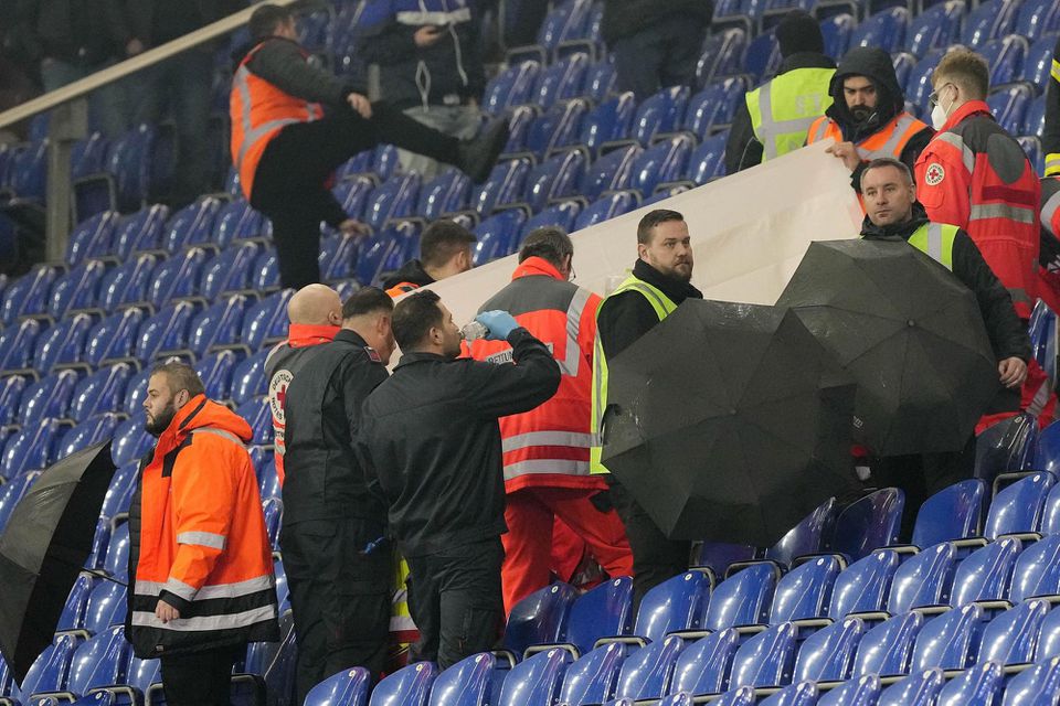 Ako informovala agentúra DPA, divák skolaboval za dosiaľ neobjasnených okolností v závere stretnutia. Záchranári sa ho snažili priamo na tribúne oživiť, no neúspešne. O úmrtí fanúšika informoval prítomných hlásateľ na štadióne, po oznámení prestali priaznivci oboch tímov skandovať a mávať vlajkami.