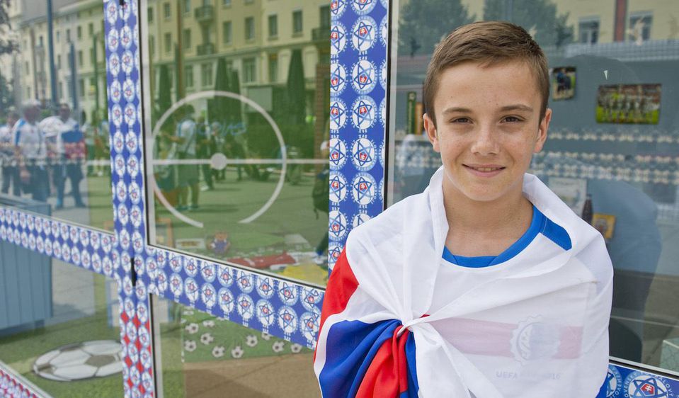 "Verím, že ešte nejaký čas tu pobudne. Záleží na tom, či naši futbalisti postúpia zo skupiny. Verím, že áno. Tipujem, že dnes vyhráme 2:0, góly dajú Hamšík a Weiss a pôjdeme do osemfinále," nezaprel v sebe Tobias "skalného" fanúšika.