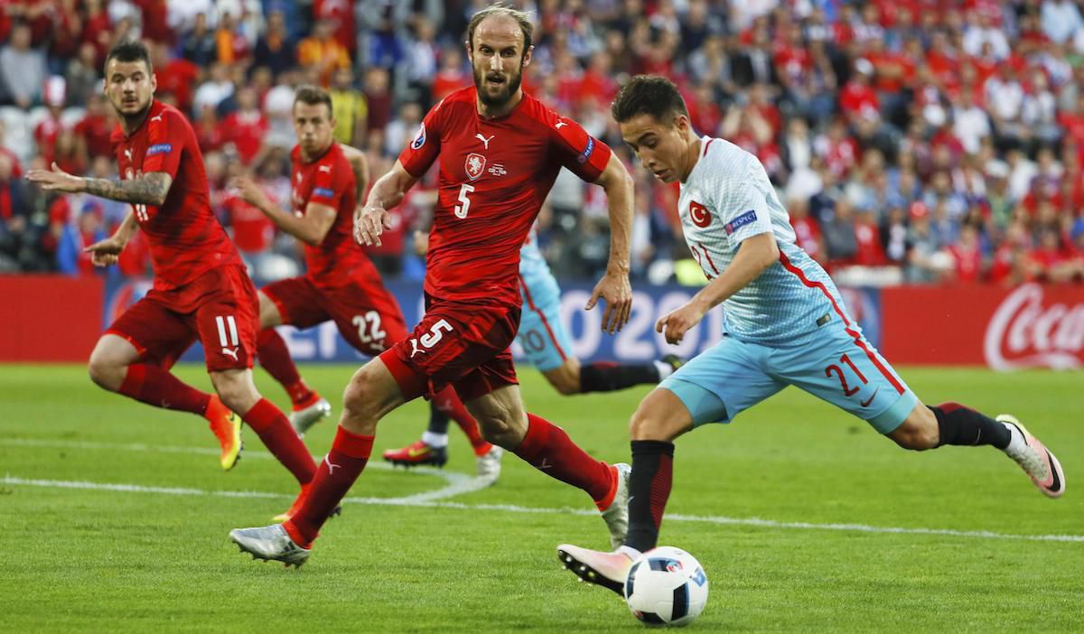 Českí futbalisti úvod stretnutia takticky nezvládli. Čakali, s čím príde súper a ten ich prekvapil dôrazom na lopte i rýchlymi protiútokmi, ktoré režíroval Emre Mor. Po prepadnutí na polovici ihriska v 10. minúte ušiel po pravom krídle a poslal prízemný center Yilmazovi, zakončujúcemu z prvej - 0:1. Turci sa upokojili, v smere do ofenzívy si dovolili aj niekoľko technických parádičiek, no v defenzíve mali veľké nedostatky. Česi sa skonsolidovali, zrýchlili prechod do útoku a vypracovali si viacero príležitostí. Veľkou hrozbou pre Turkov boli najmä štandardné situácie, čo podčiarkol Sivok, no hlavou z rohu namieril len do žrde. Po ňom neprekonal Babacana ani Kadeřábek, vbiehajúci z pravej strany do "veľkého vápna", či Plašil dobre zrealizovanou strelou z diaľky.