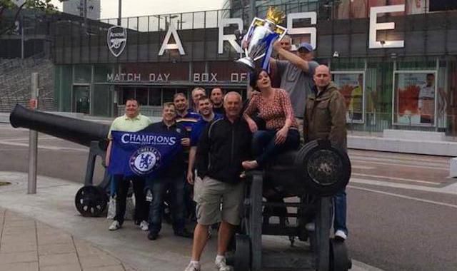 Classless Chelsea fans have gone to Arsenal's Emirates Stadium to show their only 5th Premier League title. pic.twitter.com/yj2LTyhcAT — SNs (@SalamanderNews) 28. květen 2015