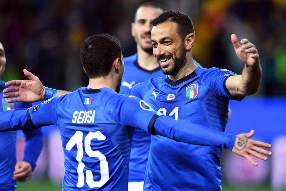 Aj Taliansko zvládlo na úvod dve papierovo ľahké prekážky. S Fínskom si poradilo 2:0 a z Parmy vyprevadilo Lichtenštajnsko s debaklom 6:0. Dvakrát sa v drese "squadry azzurra" strelecky presadil 36-ročný veterán a aktuálne najlepší kanonier najvyššej talianskej súťaže Fabio Quagliarella. Svojimi zásahmi sa stal najstarším strelcom v histórii talianskej reprezentácie.