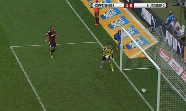 V závere prvého polčasu sobotňajšieho bundesligového stretnutia medzi Hoffenheimom a Norimbergom (2:2) sa lopta po strele Kevina Vollanda odrazila spoza bránkovej čiary späť do ihriska. Televízne zábery odhalili, že prešla celým objemom za bránkovú čiaru, čo rozhodcovia nezaregistrovali a pokračovalo sa v hre.