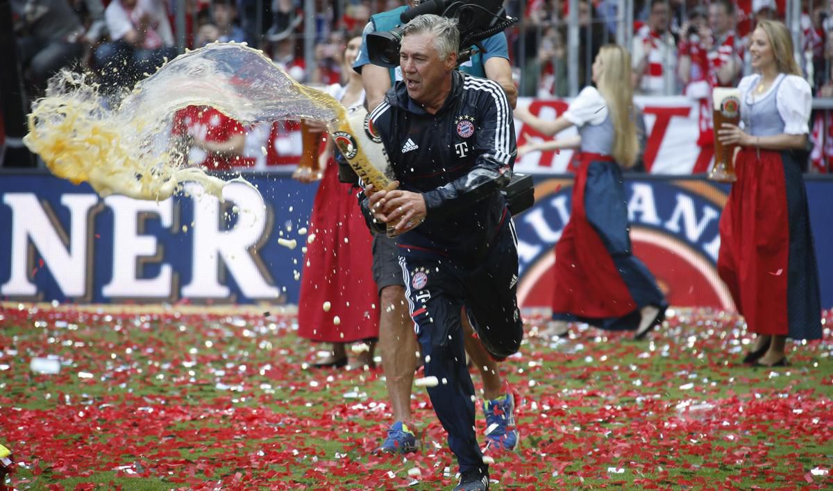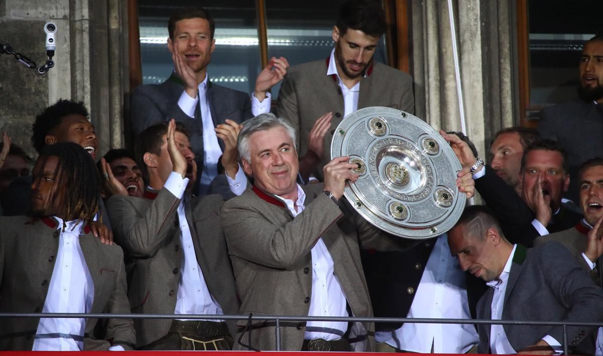 Fanúšikov pobavil aj kouč Ancelotti, ktorý sa na oslavách objavil oblečený v tradičnom bavorskom kroji s krátkymi koženými nohavicami "lederhosen".