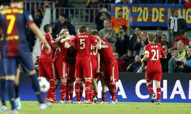 Barcelona nastúpila v základnej zostave bez Lionela Messiho, a tak sa zdalo, akoby už bola so svojím osudom zmierená. Prvý polčas preto nepriniesol veľa futbalovej krásy. Okrem dvoch šancí Bayernu, keď najprv v 12. minúte Schweinsteiger vysunul Robbena a sedem minút neskôr Robben poslal do šance Schweinsteigera, sa toho príliš neudialo. Najväčšiu šancu mal Xavi, ale v 27. minúte z päťky až trestuhodne prepálil hosťujúcu bránu.