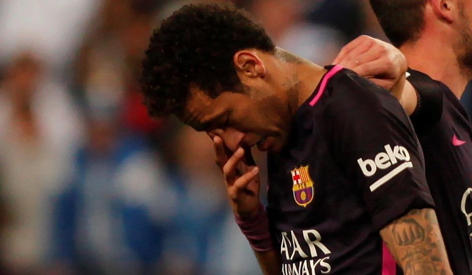 Futbalisti FC Barcelona si budú musieť 23. apríla v El Clasicu na štadióne Realu Madrid poradiť bez Neymara. Brazílčan dostal za červenú kartu v sobotnom neúspešnom stretnutí najvyššej španielskej súťaže v Malage (0:2) trojzápasový dištanc.
