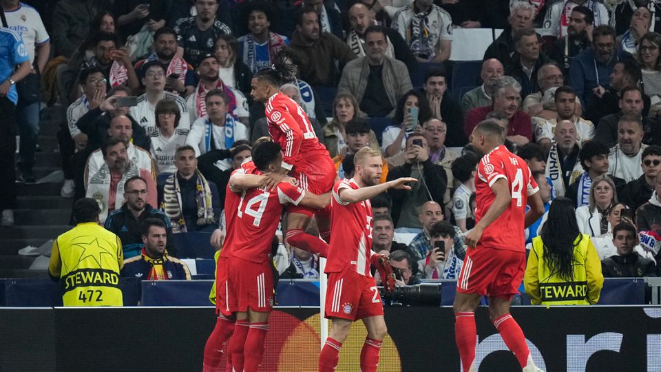 Na štadióne Santiaga Bernabeua mal v prvom polčase Bayern veľkú šancu už v úvode, ale Upamecano loptu do siete nedostal. Na opačnej strane pohrozil Mbappe, Neuer ho však vychytal. Potom sa dostali k slovu opäť hráči nemeckého majstra, keď Pitarch urobil hrubú chybu, ale Gnabry špičkou kopačky mieril len do pravého ramena brankára Lunina. Neuer potom opäť zabránil pohrome po akcii Mbappeho a na konci polčasu už Bavori udreli. Gnabry kolmým pasom medzi obrancov poslal loptu na Diaza a ten skóroval - 0:1.