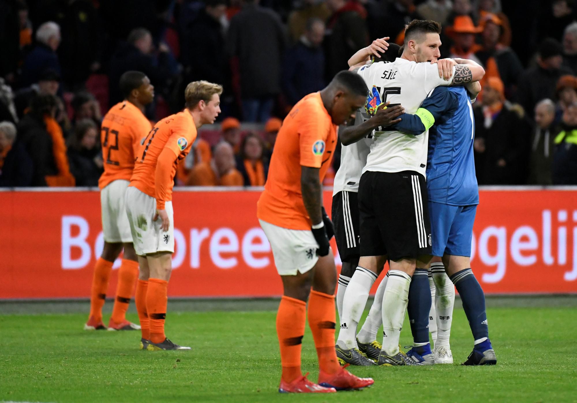 Holanďanom v nedeľu ušiel dobrý výsledok pomedzi prsty. Hoci „oranjes” v zápase prehrávali do polčasu už 0:2, podarilo sa im vyrovnať a pomýšľali minimálne na zisk bodu. Gól Nica Schulza z 90. min však schladil hráčov aj divákov na amsterdamskom Štadióne Johana Cruyffa.