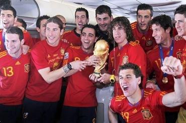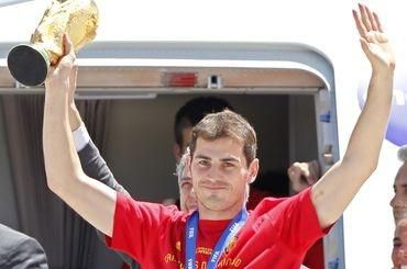 Na medzinárodnom letisku Barajas v Madride pristálo lietadlo s futbalovými majstrami sveta na palube. Ako prví sa ukázali so zlatou trofejou pre šampiónov na španielskej pôde kapitán tímu Iker Casillas a tréner Vicente del Bosque.