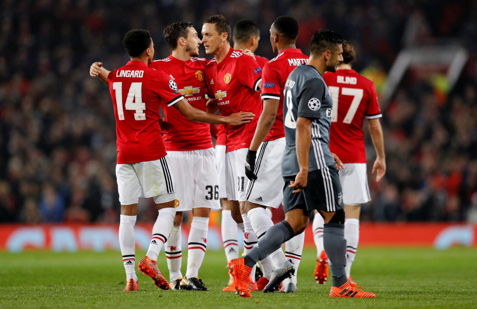 Iný anglický klub Manchester United zatiaľ úspešne zvládol všetky štyri konfrontácie v "áčku". Zatiaľ síce nemá istotu účasti medzi najlepšou európskou šestnástkou, no v minulosti sa ešte nestalo, aby ďalej neprešlo mužstvo, ktoré disponovalo takouto bilanciou dve kolá pred koncom skupinovej fázy.