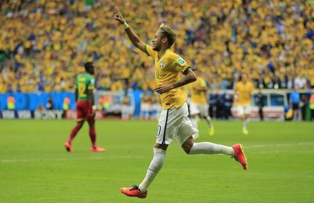 Brazílčania začali podľa očakávania náporom a už po dvoch minútach hry prišla obrovská šanca - po ukážkovej spolupráci Neymara s Hulkom ale "tutovku" Paulinha zblokoval N'Koulou a dorážka Gustava rezultovala iba do rohového kopu. Na konci 9. minúty sa prezentoval aj Kamerun, nebezpečná strela Enoha trafila iba Marcela. Nervozita stúpala, Nyom sotil do Neymara bez kartového ocenenia a kanonier domácich sa odplatil v 17. minúte gólovo, keď zostal v šestnástke úplne osamotený a prudkú prihrávku Gustava s ľahkosťou usmernil do siete. O chvíľu neskôr jeho ďalšiu štipľavú strelu vyrazil Itandje a Fred zblízka nedotlačil loptu do siete. Kamerun ale nečakane udrel - Matip po rohu ešte hlavičkoval iba do brvna, v 26. minúte už ale zblízka do odkrytej bránky skóroval po skvelej asistencii Nyoma, ktorý vľavo obišiel Alvesa. Domáci boli viditeľne zaskočení, ale z krízy ich dostal opäť Neymar, ktorý si v 35. minúte po pase od Marcela naviedol loptu na hranicu šestnástky a strelou cez obrancu do protipohybu Itandjeho dal na 2:1. V závere polčasu mal ešte veľkú šancu Hulk, domáci však išli do kabín iba s tesným náskokom.