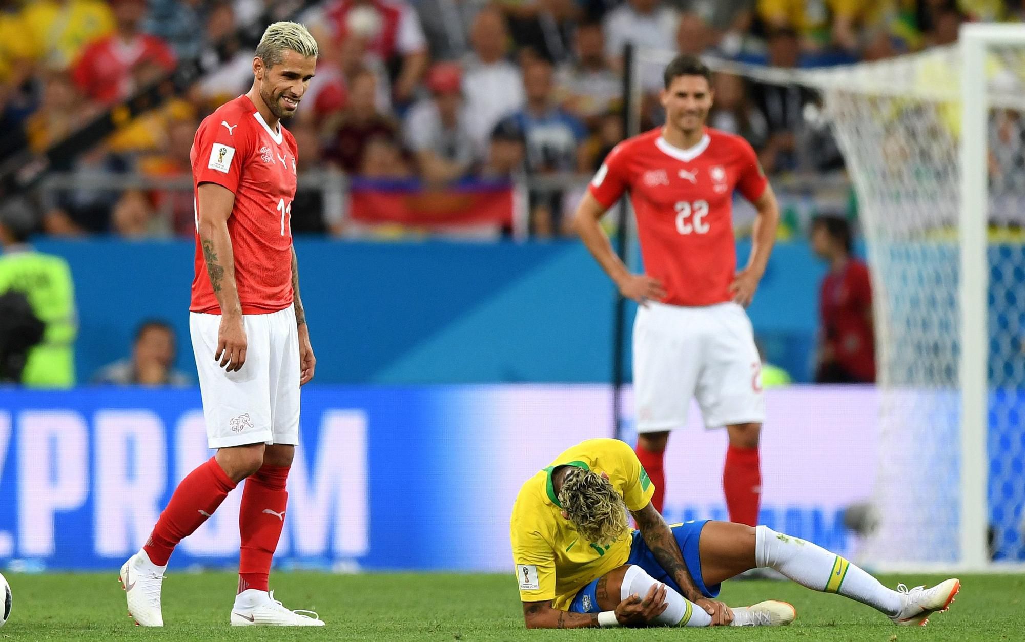 Neymar jr. bol jedným z najfaulovanejších hráčov na ihrisku v zápase proti Švajčiarom. Stredopoliar Valon Behrami, ktorý ho mal v stretnutí na starosti, občas už len nechápavo krútil hlavou, po čom všetko šiel Brazílčan k zemi.