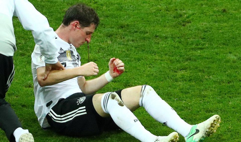 Dvadsaťosemročný stredopoliar musel pri svojom debute na svetovom šampionáte opustiť ihrisko už v 25. minúte po tom, ako ho švédsky útočník Ola Toivonen neúmyselne zasiahol kopačkou do tváre.