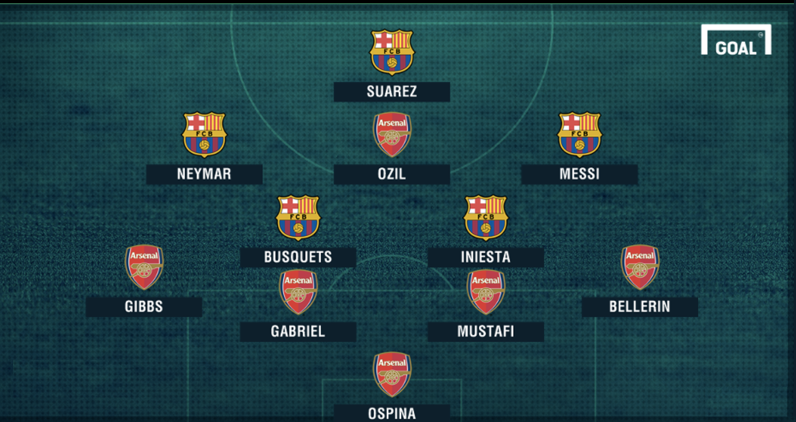 Najhoršiu jedenástku podľa Goal.com otvára brankár Arsenalu David Ospina , nasledovaný obrannou štvoricou Héctor Bellerín, Shkodran Mustafi, Gabriel a Kieran Gibbs. V stredovej formácii sa objavuje Andrés Iniesta a Sergio Busquets z Barcelony, ofenzívna štvorica najhoršieho tímu sa skladá z inokedy blahorečenej trojice Messi, Luis Suárez a Neymar . Tú dopĺňa Mesut Özil z Arsenalu FC.