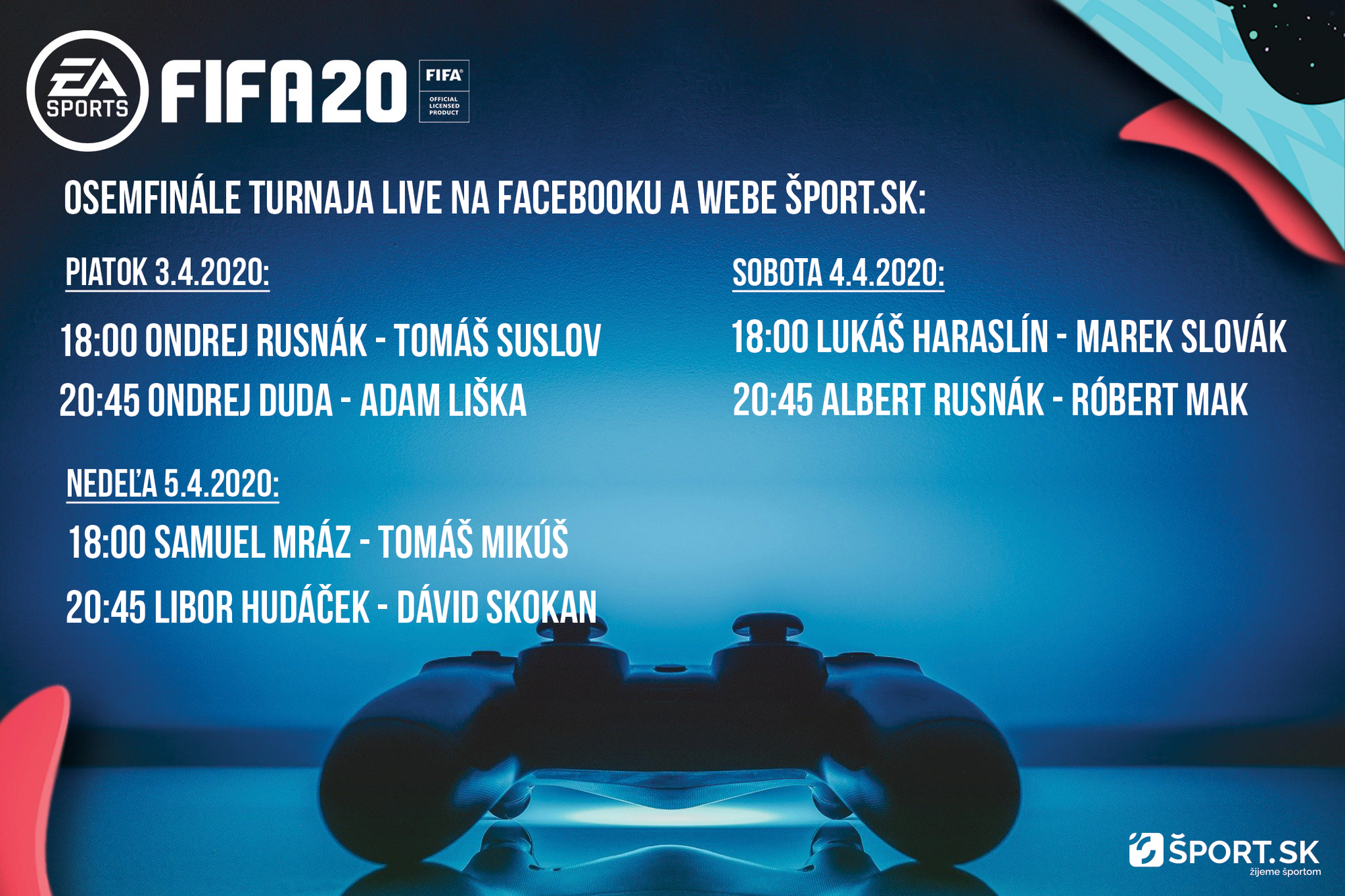 V ďalšom osemfinálovom súboji v hre FIFA 20 na turnaji ŠPORT.sk na seba narazia bývalý hokejista Ondrej Rusnák a 17-ročný futbalista holandského Groningenu Tomáš Suslov. Ako dopadne ich súboj?