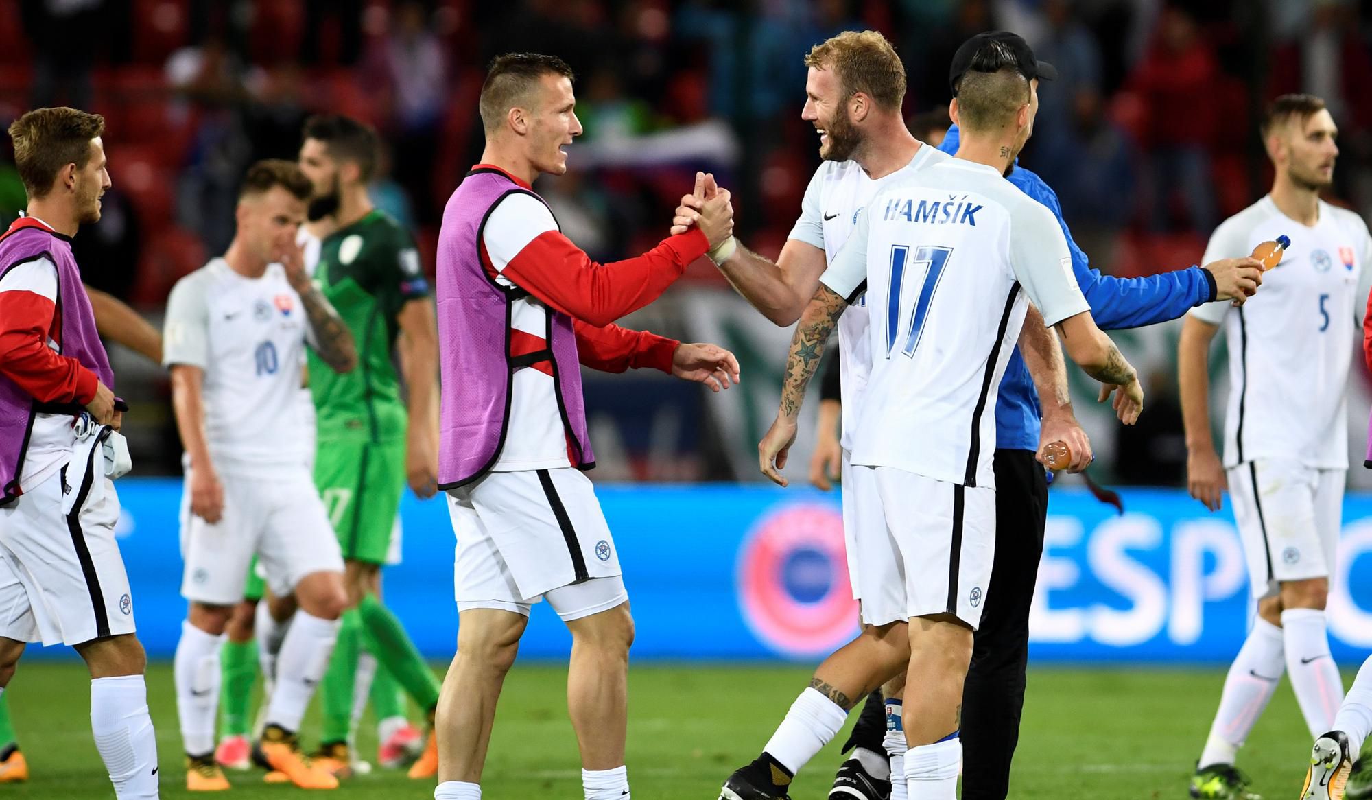 Slováci v piatok nastúpili bez "vykartovanej" stopérskej dvojice Martin Škrtel, Ján Ďurica, nahradili ich Milan Škriniar a Norbert Gyömbér.
