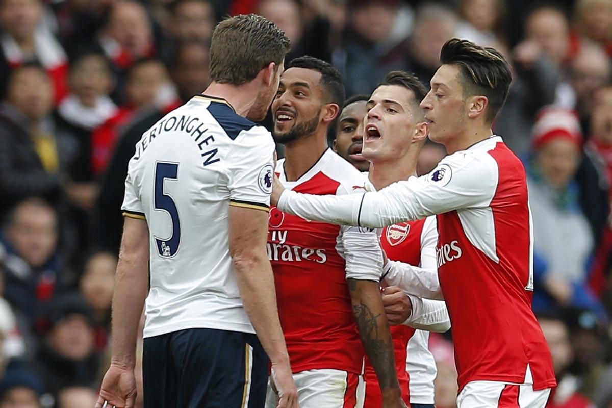 V severolondýnskom derby na Emirates Stadium pred 60 039 fanúšikmi sa diváci dočkali prvého gólu v 42. min, keď priamy kop Mesuta Özila usmernil hlavou do vlastnej bránky obranca Spurs Kevin Wimmer. Paradoxne, bola to jediná strela medzi žrde v prvom dejstve. "Kanonieri" aj s pomocou súpera korunovali svoju prvopolčasovú dominanciu. Tri minúty pred vedúcim gólom trafil Theo Walcott žrď bránky Huga Llorisa.