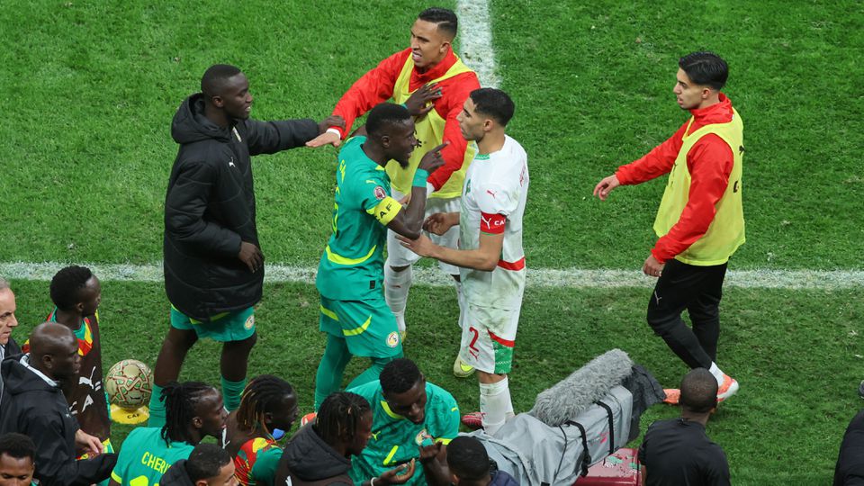 Šialený zápas medzi Marokom a Senegalom vo finále Afrického pohára národov. Zápas bol dlho pozastavený, keďže oba tímy boli mimo ihriska, pretože Senegal odmietol uznanú penaltu pre Maroko.