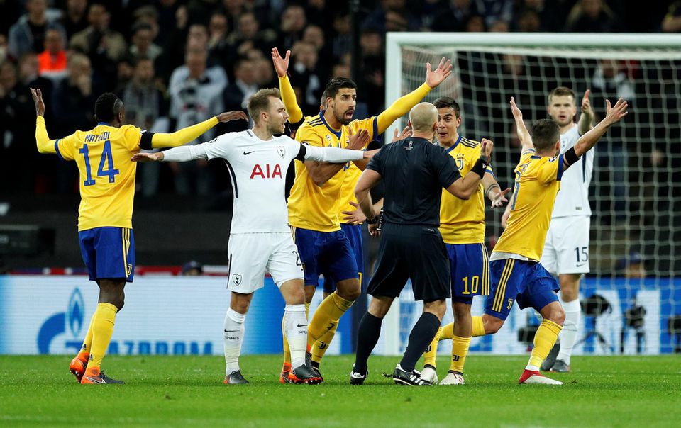Duel v "chráme futbalu" nevyšiel poľskému rozhodcovi Szymonovi Marciniakovi, ktorý už do prestávky neodpískal dve čisté jedenástky. Nepostrehol faul domáceho Jana Vertonghena na prenikajúceho Douglasa Costu ani ruku Chielliniho na druhej strane. Taktiež nevylúčil skúseného zadáka "Juve" Andreu Barzagliho, ktorý dvakrát úmyselne stúpil na kórejského útočníka Son Heung-mina.
