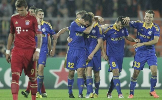 BATE Borisov (Biel.) - Bayern Mníchov (Nem.) 3:1 (1:0)Góly: 23. A. Pavlov, 78. V. Rodionov, 90.+ Renan Bressan - 90.+ F. Ribéry, rozhodoval: Stavrev (Mac.)Zostavy: BATE Borisov: Gorbunov - Poľakov, Filipenko, M Simič, Bordačev - Olechnovič, Lichtarovič (66. Sivakov), A. Volodko - A. Pavlov (84. Renan Bressan), A. Hleb - V. Rodionov (87. Mozolevski)Bayern Mníchov: Neuer - Lahm, J. Boateng, Dante, Badstuber (77. Schweinsteiger) - Javi Martínez (58. Shaqiri), Luiz Gustavo - T. Müller, Kroos, F. Ribéry - Mandžukič (75. C. Pizarro)