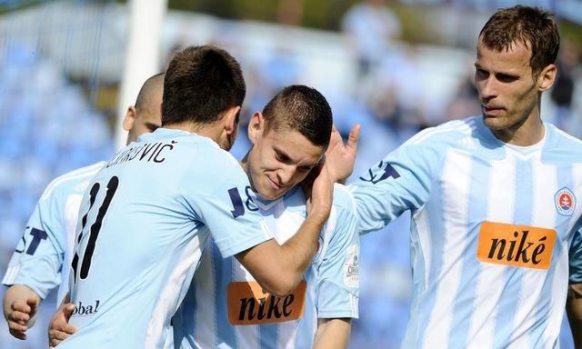Slovan Bratislava - ViOn Zlaté Moravce 3:0 (2:0) Góly: 9. Milinkovič, 35. Mészáros, 62. KonečnýRozhodovali: Jaška - Balko, Benko, ŽK: Hodek (Z. Moravce), ČK: 30. Pavlovič (Z. Moravce), 1750 divákovZostavy a striedania Slovan: P. Kováč - Bagayoko (53. Konečný), Kladrubský, Jánošík (46. Halenár), Pauschek - Mészáros, Kopúnek, Grendel, Milinkovič - Piroska (74. Szarka), SmetanaZ. Moravce: Kuciak - Pavlenda, Pavlovič, Majerník, Candrák - Orávik, Luhový (38. Pintér), Paur, Hruška - Hodek (89. L. Kováč), Brčák (70. Bernáth)Domáci otvorili skóre už v 9. minúte, keď sa Milinkovič dostal do samostatného úniku, obišiel brankára Kuciaka a pohodlne poslal loptu do opustenej brány - 1:0. V 16. minúte mal na dosah druhý gól Smetana, ktorý však vnútri šestnástky nedočiahol na Piroskovu prihrávku. Práve Pirosku v 29. minúte fauloval v gólovej šanci tesne pred pokutovým územím Paulovič a hlavný rozhodcu Jaška mu ukázal červenú kartu. Grendel z následného priameho kopu tesne minul súperovu bránu, no mrzieť ho to nemuselo, keďže Slovan využil početnú výhodu už po šiestich minútach. Stalo sa tak po rýchlej akcii, keď si Milinkovič urobil priestor na ľavej strane, naservíroval loptu Mészárosovi a ten ju nemal problém poslať za chrbát bezmocného Kuciaka - 2:0. Hostia boli smerom dopredu bezzubí, ich jedinou vážnejšou príležitosťou bola v závere polčasu hlavička Brčáka, pri ktorej však Kováč nemusel zasiahnuť.Krátko po zmene strán sa Brčák dostal do ďalšej šance, tentoraz jeho strelu z nebezpečnej vzdialenosti zblokoval Bagayoko. V 58. minúte mal na kopačke kontaktný gól Hodek, ktorý sa po chybe domácej obrany rútil sám na Kováča, ten však jeho strelu zneškodnil. Tretí gól "belasých" pridal po hodine hry striedajúci Konečný, ktorý využil zlé vybehnutie gólmana hostí - 3:0. V 68. minúte spálil svoju tretiu šancu v zápase Brčák, keď z ľavej strany napálil loptu vedľa pravej žrde Kováčovej svätyne. Domáci brankár sa vyznamenal v 75. minúte pri strele Hrušku, keď jeho technickú strelu vytesnil na rohový kop. Sedem minút pred koncom riadneho hracieho času sa ViOn-u podarilo dosiahnuť gól zásluhou Hodeka, ten však rozhodcovia pre ofsajd neuznali. V závere sa už skóre nezmenilo a Slovan tak pred zrakmi 1750 divákov zvíťazil 3:0.