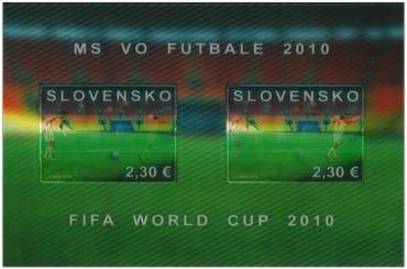 Poštovú známku, ktorú SP vydala symbolicky v deň odchodu slovenskej reprezentácie na Majstrovstvá sveta vo futbale 2010 v Juhoafrickej republike, t.j. 8. júna 2010, je výnimočná pohyblivým motívom futbalistu kopajúceho do lopty. Bola vytlačená ofsetom na lentikulárnej samolepkovej fólii v hárčekovej úprave a dokumentuje historický úspech slovenských futbalistov na tomto najvýznamnejšom futbalovom podujatí.