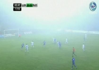Luxembursko: J. Joubert - Schnell, Blaise (36. Martino), Hoffmann, Mutsch - R. Peters (58. Da Mota) - Payal, Bettmer - Gerson, Ch. Leweck - A. Joachim (90. Siebenaler) Slovensko: J. Mucha ml. (77. Kello) - Pekarík (68. Kubík), Pečalka, J. Ďurica, Hubočan (40. Šesták) - Karhan, Kucka (64. Zabavník), Weiss ml. (64. Stoch) - Hamšík, A. Nemec, Jendrišek Stretnutie v Luxemburgu sa hralo v náročných podmienkach, nad ihriskom sa celých 90 minút vznášala hustá hmla. Už v 3. min sa prekvapujúco dostal do šance domáci Leweck, v dobrej pozícii však netrafil dobre loptu. Na opačnej strane sa v 6. min snažil Hamšík vysunúť Nemca, ale dobre zasiahla obrana Luxemburska. Slováci pohrozili aj v 12. min, keď najskôr Pekaríkov center chytil Joubert a o niekoľko sekúnd na to si zle prebral loptu Nemec. V ďalšom priebehu prevzali Luxemburčania iniciatívu a proti 20. mužstvu v rebríčku FIFA mali šokujúco viac z hry. V 22. min vyslal prvú strelu medzi tri žrde Slovenska Leweck, Mucha bez problémov chytil. Najväčšia šanca hostí v prvom polčase sa zrodila v 27. min po dlhom pase Pečalku. Tiesnený Nemec dokázal ľavačkou zakončiť, ale Joubert dobre vybehol a loptu vyrazil. Na druhej strane mal veľkú príležitosť Gerson, ktorý sa po prihrávke za obranu ocitol zoči-voči Muchovi, ale do strely domáceho krídelníka sa v poslednom okamihu hodil Pečalka. Ďalšie minúty priniesli nesúrodosť na oboch stranách bez výraznejších gólových okamihov. Až v nadstavenom čase mali Slováci možnosť otvoriť skóre, kapitán Hamšík však z priameho kopu namieril vysoko nad.