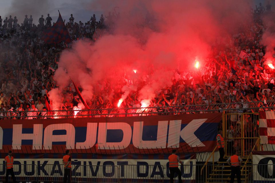 Miestne média zverejnili fotografie, na ktorých členovia tvrdého jadra Hajduku pokreslili pumpu symbolmi Ustašovcov - chorvátskeho pronacistického režimu počas druhej svetovej vojny, zodpovedného za systematickú likvidáciu Srbov. Hajduk vo štvrtok zvíťazil nad Slaviou Sofia 3:2 a postúpil do 3. predkola.