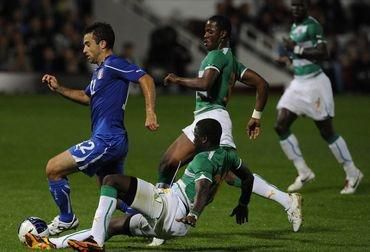 Talianski futbaloví reprezentanti pokračujú v slabých výkonoch aj po majstrovstvách sveta v JAR. Súperi Slovenska v základnej skupine na šampionáte v utorok na domácej pôde podľahli Pobrežiu Slonoviny tesne 0:1, keď sa o jediný presný zásah postaral v 54. minúte Kolo Toure.