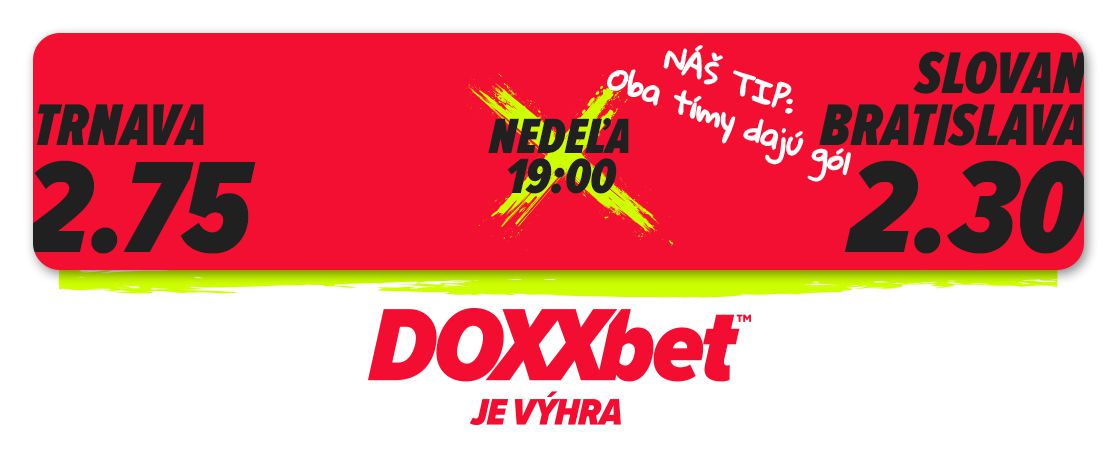 Trnava vs Slovan sľubuje všetko, čo od derby čakáš. Emócie, góly a atmosféru, ktorá ťa bude držať pri obrazovke od prvej minúty. Skúsení tipéri sa zhodujú: oba tímy skórujú. Slovan si odnesie aspoň bod, no Trnava to belasým určite neuľahčí. Využi bonusy od DOXXbetu, tipni si s nami a buď pri tom naplno. Táto jazda stojí za to.