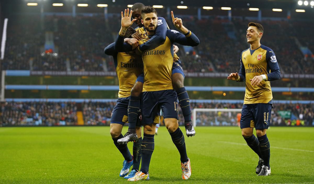 Aston Villa - Arsenal Londýn 0:2 (0:2)Góly: 8. Giroud (z 11 m), 38. Ramsey, 33.285 divákov.