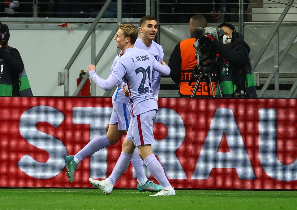 V prvom polčase videli fanúšikovia opatrný futbal z oboch strán. Barcelona síce tradične dominovala v štatistike držania lopty, ale obrana Frankfurtu odolávala. Päť minút pred prestávkou nariadil rozhodca jedenástku pre Eintracht, po zásahu VAR ju však odvolal. V 48. minúte zahrávali domáci roh, ktorý hostia odvrátili za šestnástku, kde sa oprel do lopty Knauff a prekonal ter Stegena - 1:0. Druhý úder mohli hráči nemeckého tímu uštedriť súperovi už o dve minúty. Kostič si nabehol na prihrávku do vápna a ľavačkou vypálil tesne nad bránu. Domáci svojou aktivitou zaskočili favorizovaný katalánsky tím, ktorého stojaté ofenzívne vody rozhýbalo až dvojité striedanie po hodine hry. Torres si dvakrát vymenil loptu s novým mužom na ihrisku F. de Jongom a vnútri pokutového územia pohotovou strelou k pravej žrdi vyrovnal - 1:1. V 78. minúte dostal druhú žltú a červenú kartu Tuta, domáci však oslabenie ustáli a pred odvetou si uchovali šance na postup.