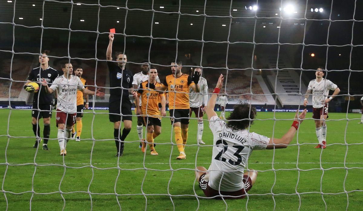 Wolverhampton Wanderers zvíťazil nad Arsenalom Londýn 2:1. Hostia dohrávali s deviatimi hráčmi, po červených kartách museli odísť predčasne do kabín obranca David Luiz aj brankár Bernd Leno. Faul Luiza potrestal v závere prvého polčasu z pokutového kopu Ruben Neves. O zisku troch bodov pre "vlkov" rozhodol v 49. minúte Joao Moutinho.